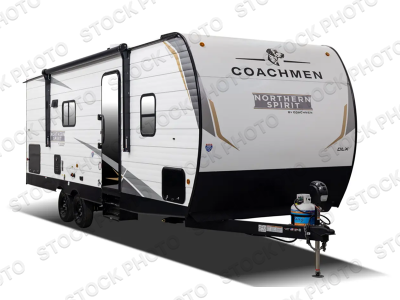 In any Northern Spirit DLX travel trailer by Coachmen, you will find quality craftsmanship along with an affordable price tag. These units each feature a straight axle with electric breaks to make setting up easier and an enclosed underbelly for added protection as you travel. The Base Camp Package provides each unit with black tank flush, a monitor panel for quick access to the functions of your unit, a 13.5K A/C unit, and a tankless water heater for added convenience. Inside, you'll find USB charging stations throughout, skylights, LED interior lights and more comforts!