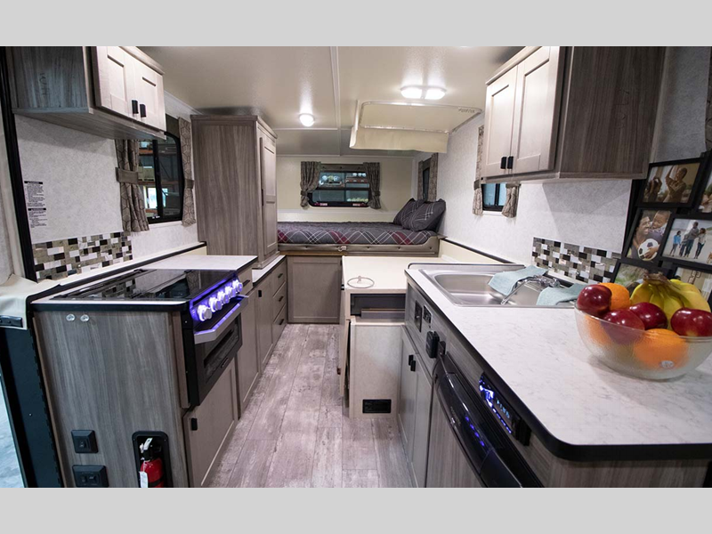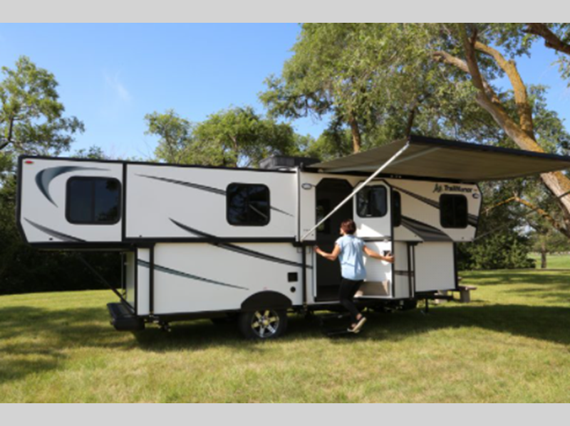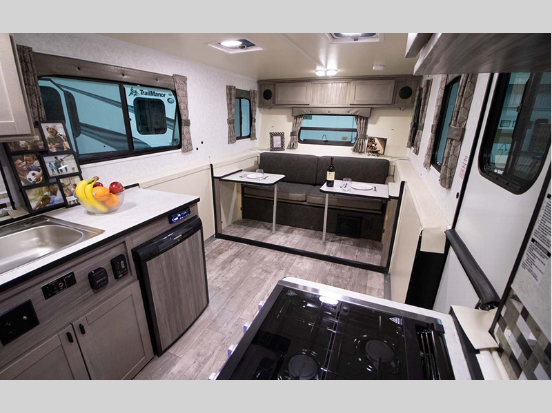 Each travel trailer will only take a couple minutes to setup up thanks to the TrailManor torsion bar lift system that is easy as opening the trunk of a car, and each RV is constructed with durable materials to last through years of memories. A full bath comes standard, making camping easier than ever, plus you'll have your own three burner cooktop with an oven, a refrigerator, and plenty of storage space for all your valuables.
