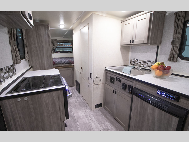 Sleeps 4 Slides 1 Length 20 ft Ext Width 7 ft 11 in Ext Height 6 ft 8 in Int Height 6 ft 4 in Hitch Weight 392 lbs Dry Weight 3040 lbs Cargo Capacity 1600 lbs Fresh Water Capacity 20 gals Grey Water Capacity 35 gals Tire Size 15" Furnace BTU 20000 btu Available Beds Queen Refrigerator Type Three Way Refrigerator Size 3 cu ft Cooktop Burners 3 LP Tank Capacity 20 lbs Water Heater Capacity 6 gal Water Heater Type DSI Gas/Electric Axle Count 1 Number of LP Tanks 2 Shower Type Tub/Shower Combo Similar Floorplans