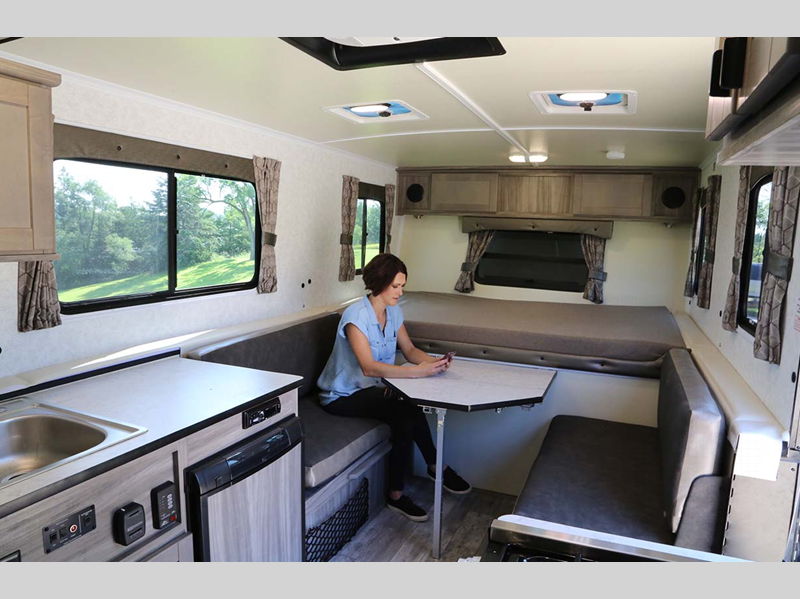 Sleeps 6 Length 22 ft Ext Width 7 ft 11 in Ext Height 6 ft 8 in Int Height 6 ft 4 in Hitch Weight 388 lbs Dry Weight 3040 lbs Cargo Capacity 1700 lbs Fresh Water Capacity 20 gals Grey Water Capacity 35 gals Tire Size 15" Furnace BTU 20000 btu Available Beds King, Double Refrigerator Type Three Way Refrigerator Size 3 cu ft Cooktop Burners 3 LP Tank Capacity 20 lbs Water Heater Capacity 6 gal Water Heater Type DSI Gas/Electric Axle Count 1 Number of LP Tanks 2 Shower Type Tub/Shower Combo -