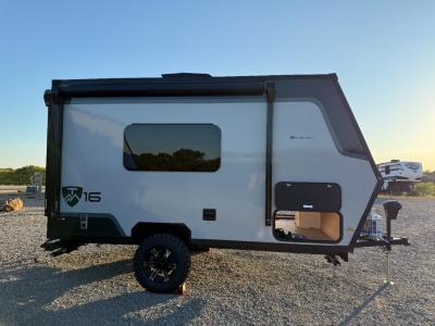 Camping trips just got a whole lot sweeter in this single axle travel trailer! You can comfortably sleep four between the front bed with a wall mounted bunk bed above plus the dinette with two seats. A two burner cooktop and an air fryer will let you make meals each day, and there is a 10.7 cu. ft. full-size Everchill 12V refrigerator to keep your cold items fresh. After you've made dinner and freshened up in the shower, head outdoor to relax under the patio awning! The TM 16 S Upgrade Package features off-road tires and wheels Package, a bathroom window, a wheel kit for the tongue jack, and two awnings; see dealer for more details!